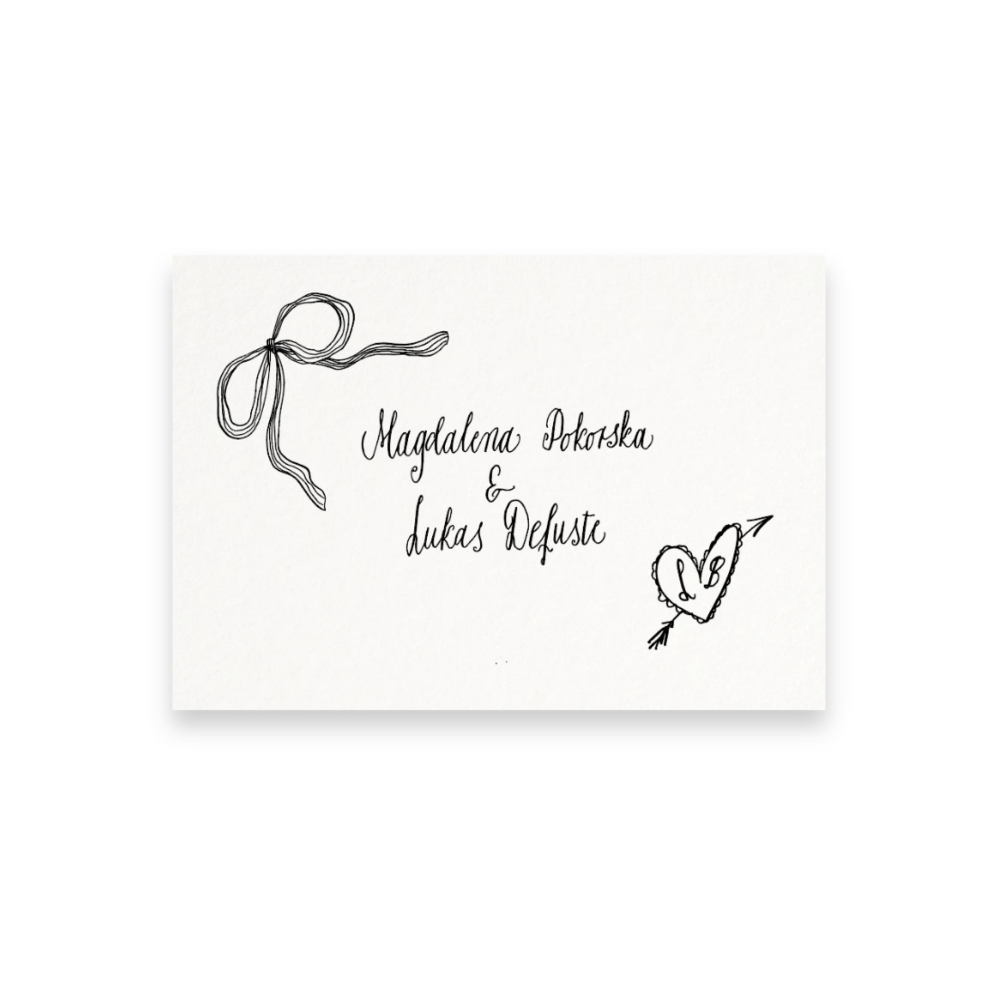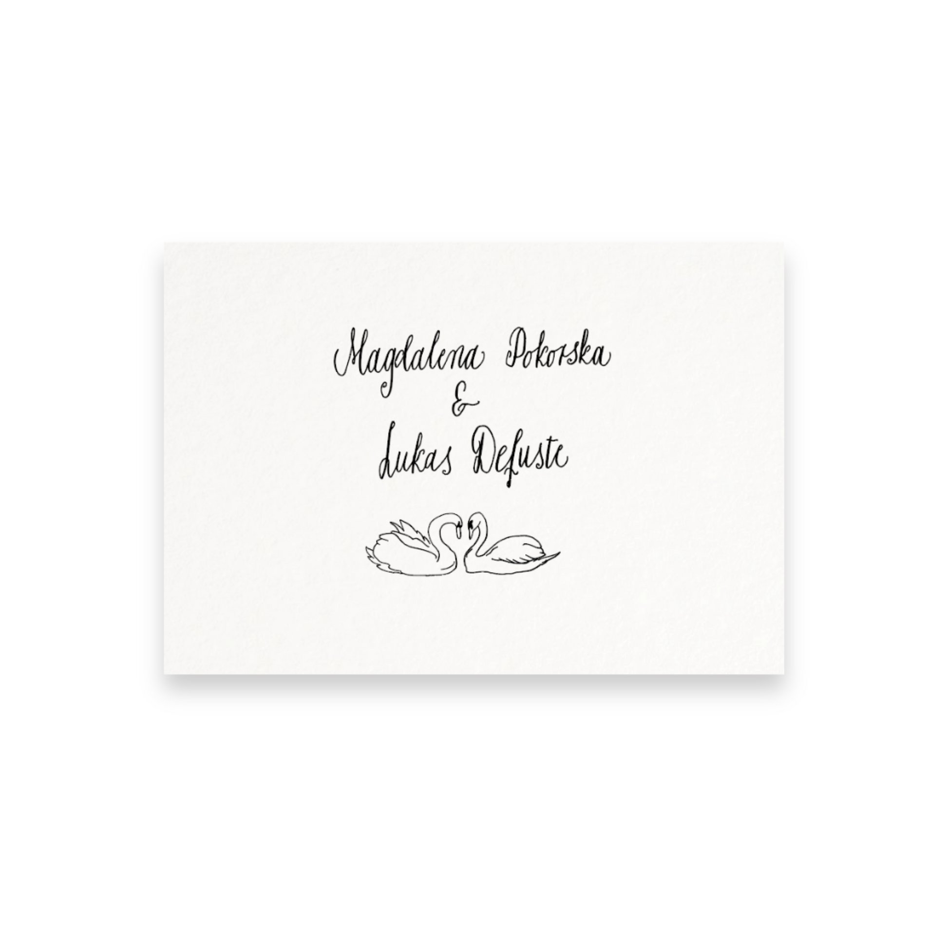 Personalizacja gości na odwrocie koperty. W zależności od wybranego podłoża zadruk może być czarny, biały lub w kolorze.