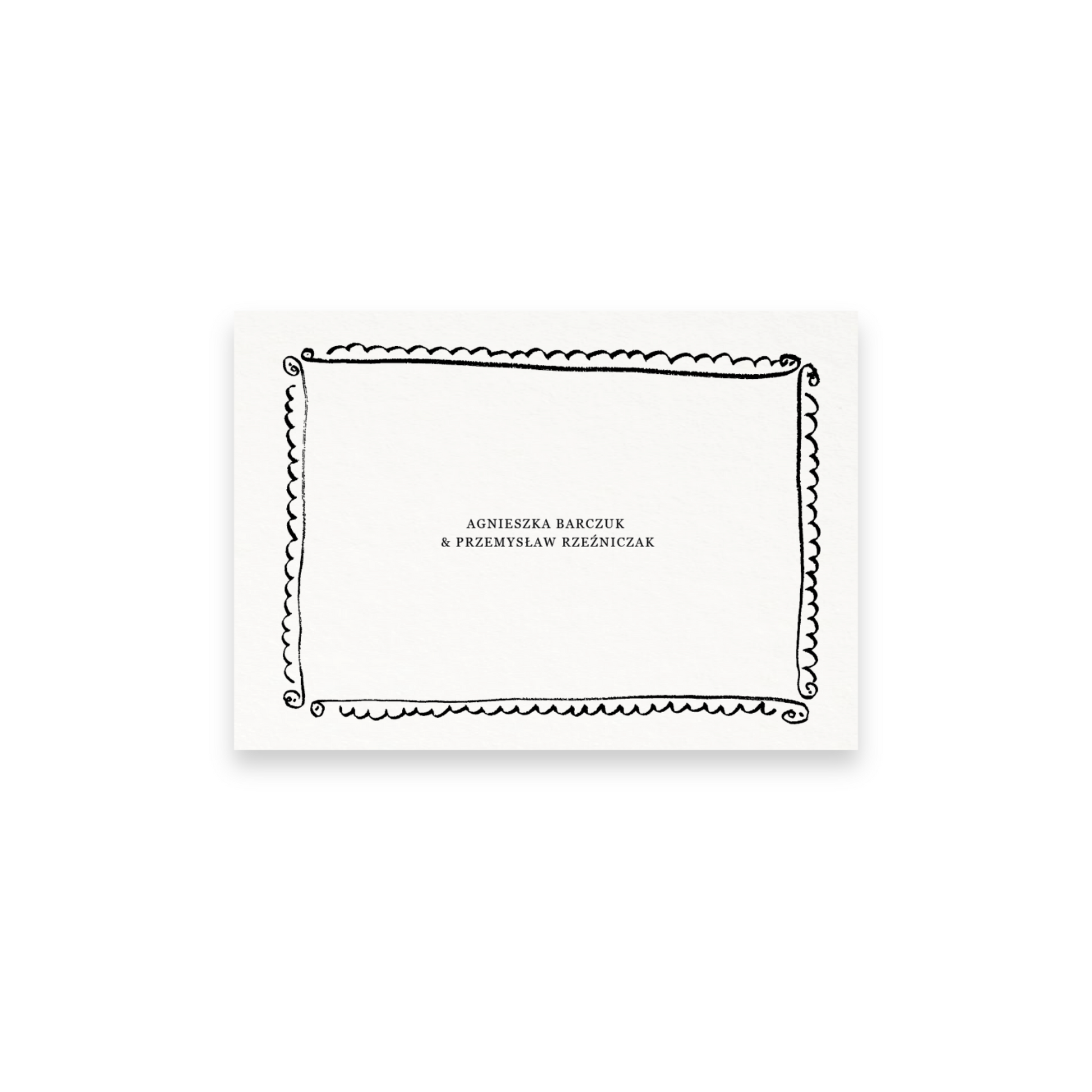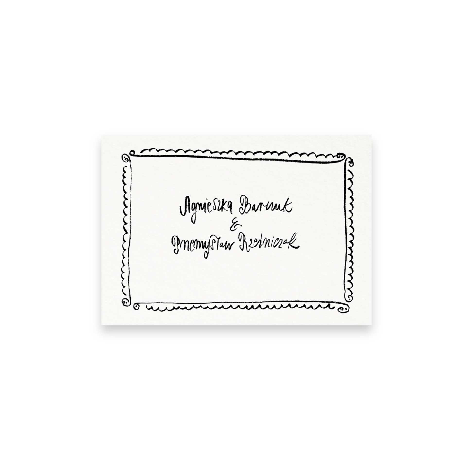 Personalizacja gości na odwrocie koperty. W zależności od wybranego podłoża zadruk może być czarny, biały lub w kolorze.